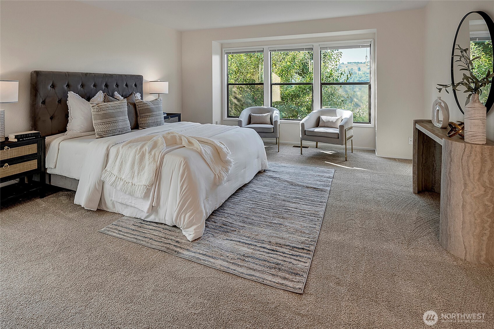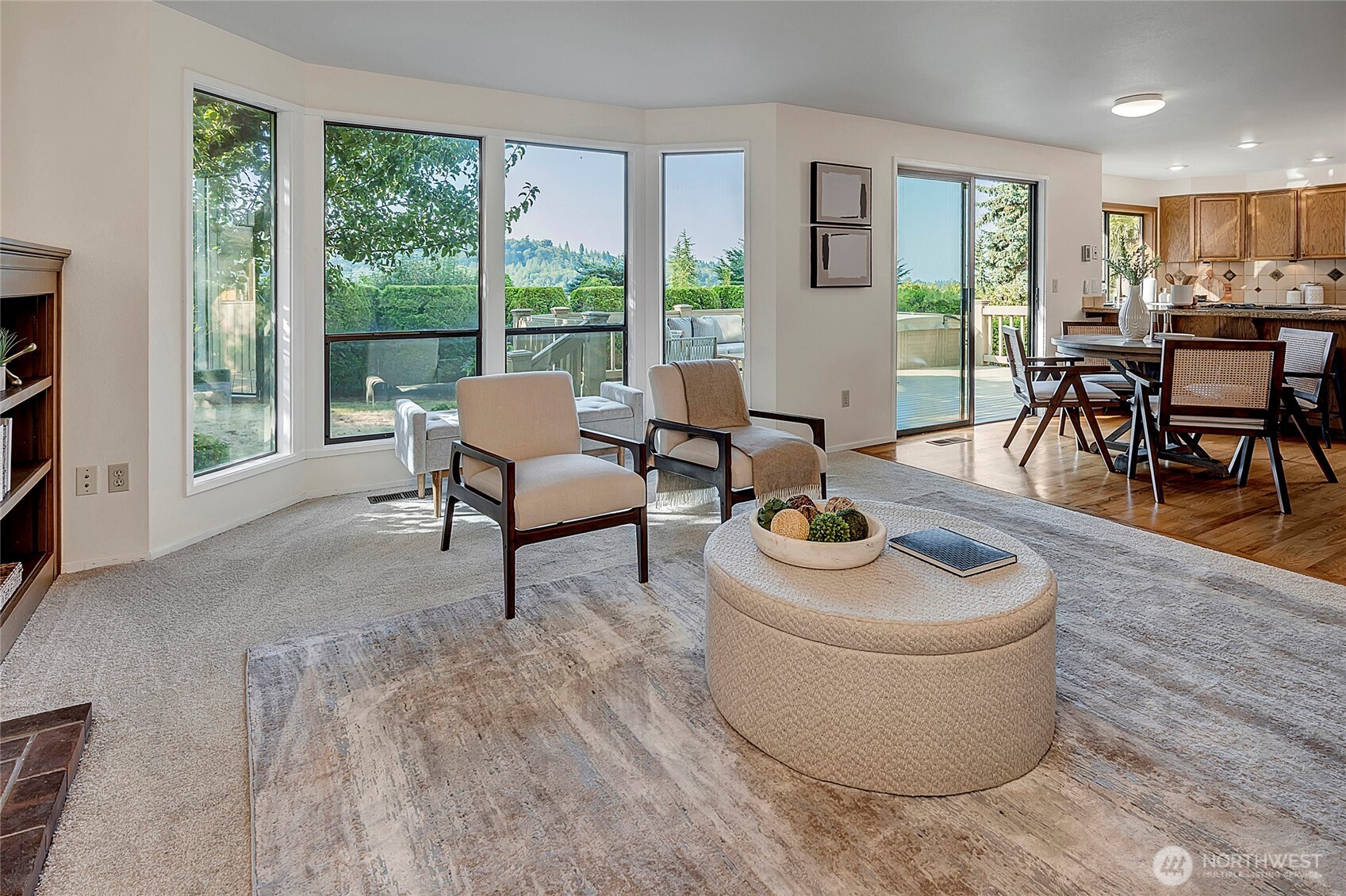 First time on the market in 42 years! This stunning five bedroom, three and a half bathroom Somerset retreat is set within the award-winning Bellevue School District and Somerset Elementary boundaries. Light-filled and well maintained, it offers skylights, open spaces, two inviting living rooms with fireplaces, and a central kitchen flowing into the family room. Expansive windows showcase incredible Newcastle Golf Course views. Step outside to a level fenced yard with mature landscaping, spa, and spacious deck--ideal for entertaining or quiet relaxation. Pre-inspected and move-in ready!