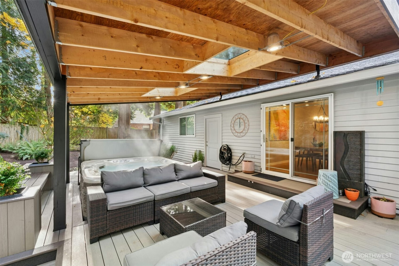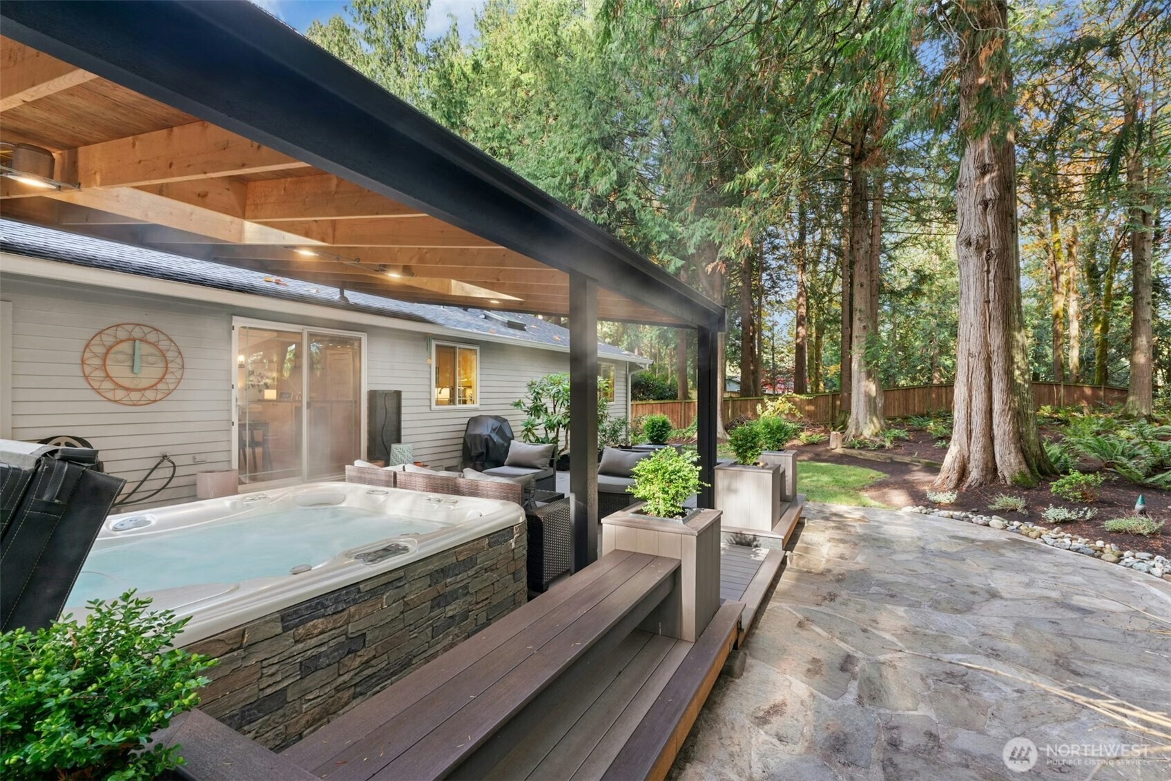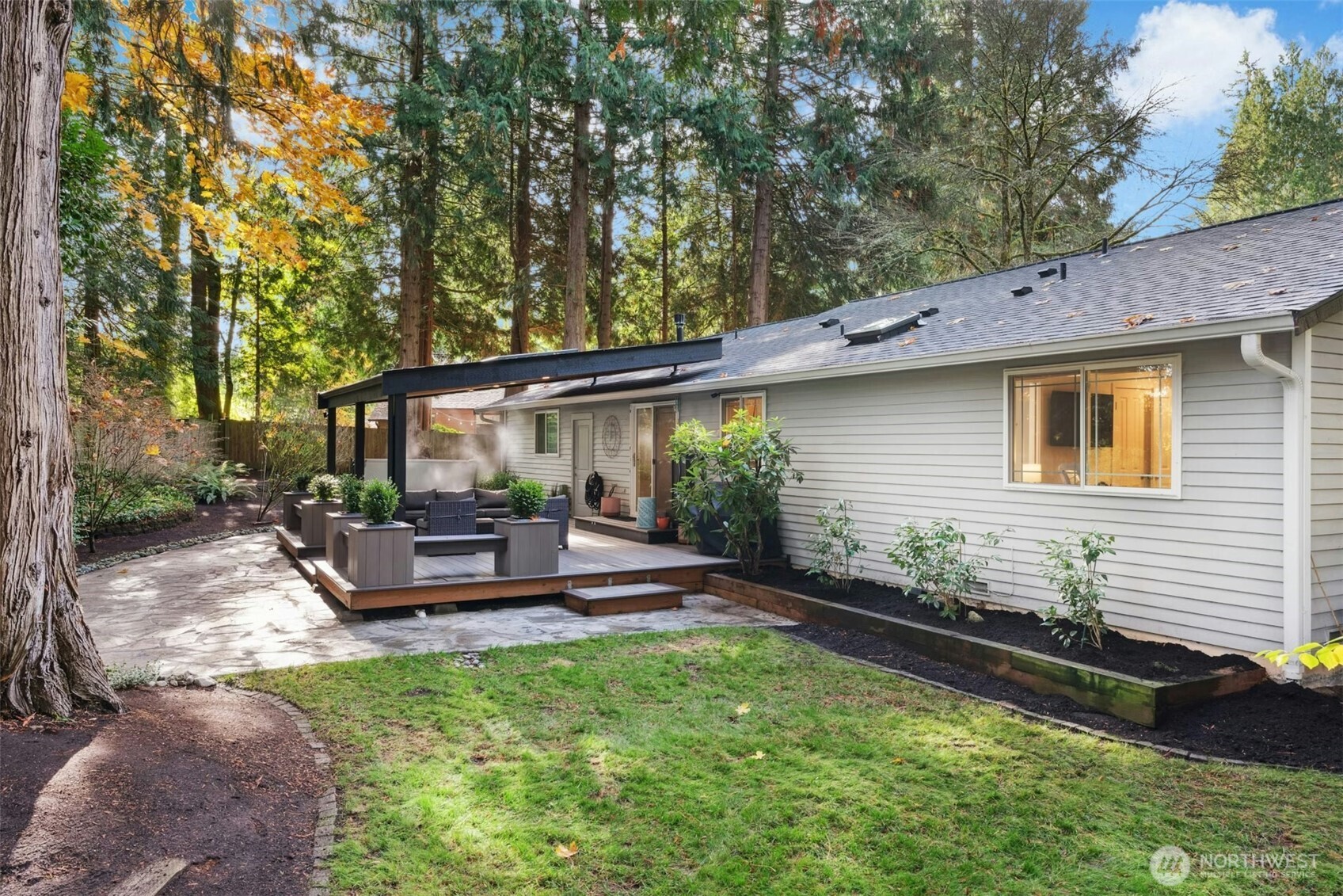 Tucked away in Sammamish's peaceful & sought-after Pacific Estates neighborhood, this beautifully maintained 3BR, 1,270SF one-story home blends comfort, privacy & style. Lush 11,982SF lot with arboretum-like grounds incl towering firs, fenced private backyard & huge covered deck with spa & adjoining stone patio - perfect for entertaining. Light-filled interior w/vaulted ceilings & recently refreshed w/new paint, updated bath, upgraded designer lighting & sleek tile flooring. 2-car garage, central A/C, top-rated LWSD. True A+ location just blocks to downtown Sammamish, mins to I-90 & Lk Sammamish, & equidistant to Redmond & Issaquah this home delivers modern updates, timeless charm, and a prime cul-de-sac setting. Priced for immediate sale.
